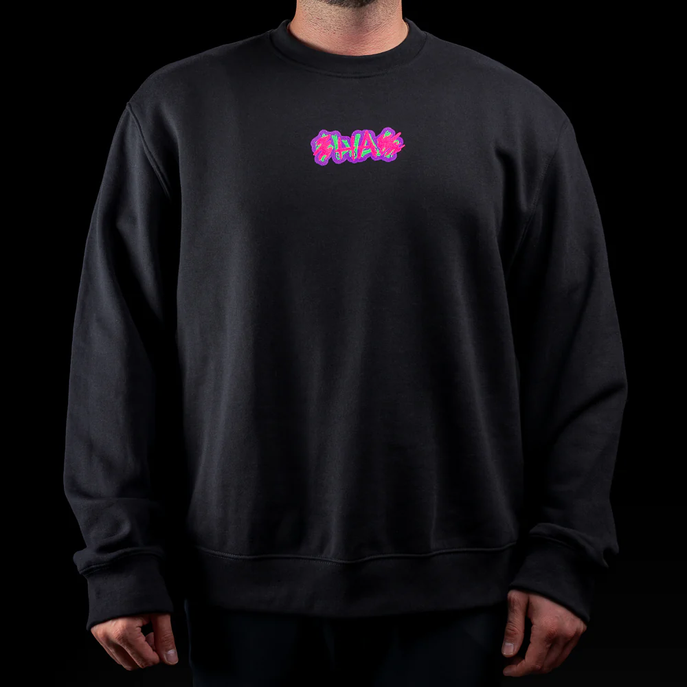The Defaced Skeleton King Crewneck takes SWAG’s twisted playing card art and blasts it across the back of a premium black sweatshirt. A neon Skeleton King rules the deck, surrounded by maniacal “HA” scrawls for full unhinged energy. Up front, a defaced SWAG chest hit sets the tone — before the back makes its move. Streetwear with villain intent.