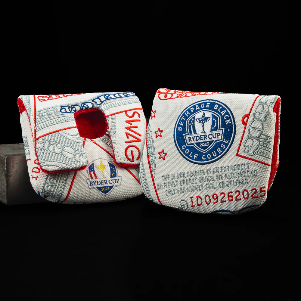 Bring a piece of golfâs biggest stage to your bag with the officially licensed Ryder Cup 2025 Dollar Bill Center Shaft Mallet Cover. The bold, currency-inspired design captures the high stakes of Bethpage Black, accented with patriotic red, white, and blue and finished with the Ryder Cup seal front and center. Made to protect your clubs while turning heads, this collection is a must-have for fans, players, and collectors. Carry a touch of Ryder Cup history every time you tee it up.