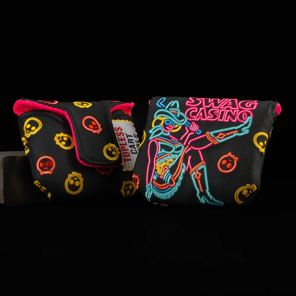 When the lights go low, this cover turns up. The SWAG Casino Mallet Cover shines like a vintage Vegas marquee—cowboy boots, bold curves, and casino attitude stitched to perfection. Surrounded by glowing skulls and old-school strip vibes, it’s built for players who gamble big and never fold. Vegas flash, SWAG edge—your flatstick just hit the jackpot.
